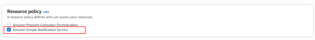 - End User Messaging / Pinpoint Lambda: Select from the dropdown, there will be only 1 value to pick from
